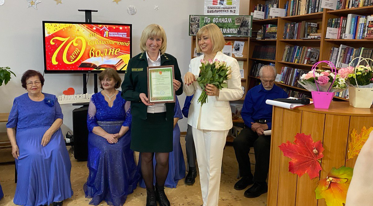 Клинский филиал ГАУ МО «Мособллес» благодарственным письмом поздравил сотрудников Клинской городской библиотеки № 2 с 70-летием со дня основания.
