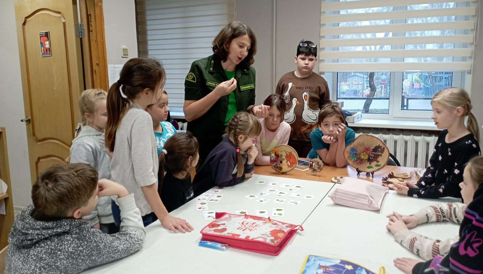 Она рассказала школьникам о своей профессии, подчеркнув важность охраны лесов и защиты природы, показала поделки, выполненные на спилах разных видов древесины воспитанниками школьных лесничеств и ею самой. Эти изделия наглядно продемонстрировали богатство природных материалов, которыми обладает лес, и вдохновили ребят на собственные творческие эксперименты.