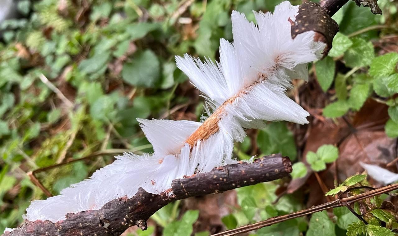 Редкое природное явление, известное как «ледяные волосы» (или ледяная шерсть, морозная борода), встретили специалисты Московского учебно-опытного лесничества недалеко от деревни Рязанцы городского округа Щёлково в лесных насаждениях Фряновского участкового лесничества.