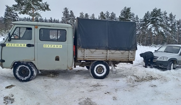 Его автомобиль застрял в сугробе на территории Чернореченского участкового лесничества в окрестности «Голубых озёр». С помощью служебной машины и троса лесничим удалось вытащить легковушку на дорогу.